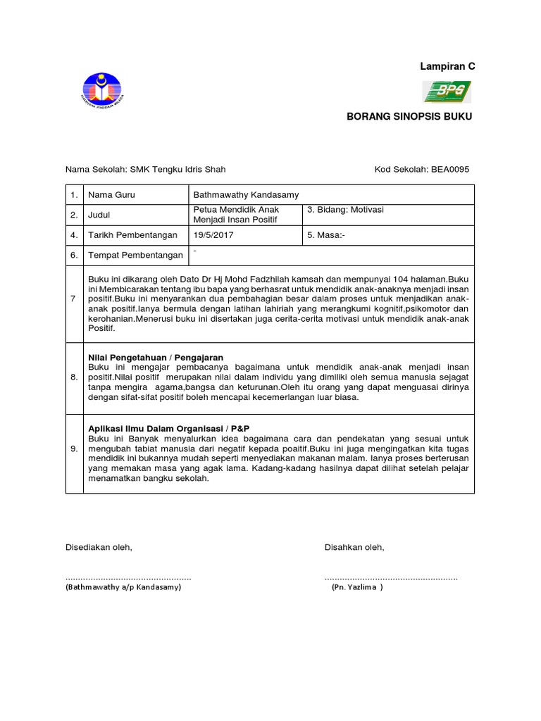 Petua Mendidik Anak Menjadi Insan Positif Doc Borang Program Pemerkasaan Budaya Amalan Membaca Buku Kalangan Guru Pelatih Ipg Kampus Temenggong Course Hero