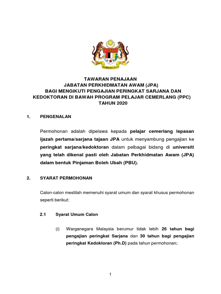 Biasiswa Jpa Program Pelajar Cemerlang Ppc Sarjana Phd 2020