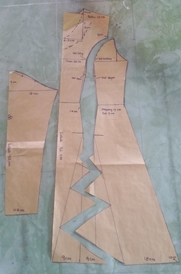 Baju belah kebaya panjang. Mcm biasa nmpk ade tnda lipatan tu lipat dua kain letak pola pinkn dan tanda basi. Kita tengok balik ukuran punggung.