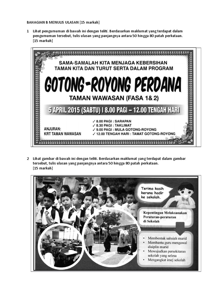 Menulis Ulasan Berdasarkan Poster Upsr Bm Penulisan Malay Language Exam Papers Education