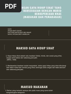 Perancangan Gaya Hidup Sihat Yang Bersesuaian Dengan Murid Berkeperluan Khas Makanan Dan Pemakanan