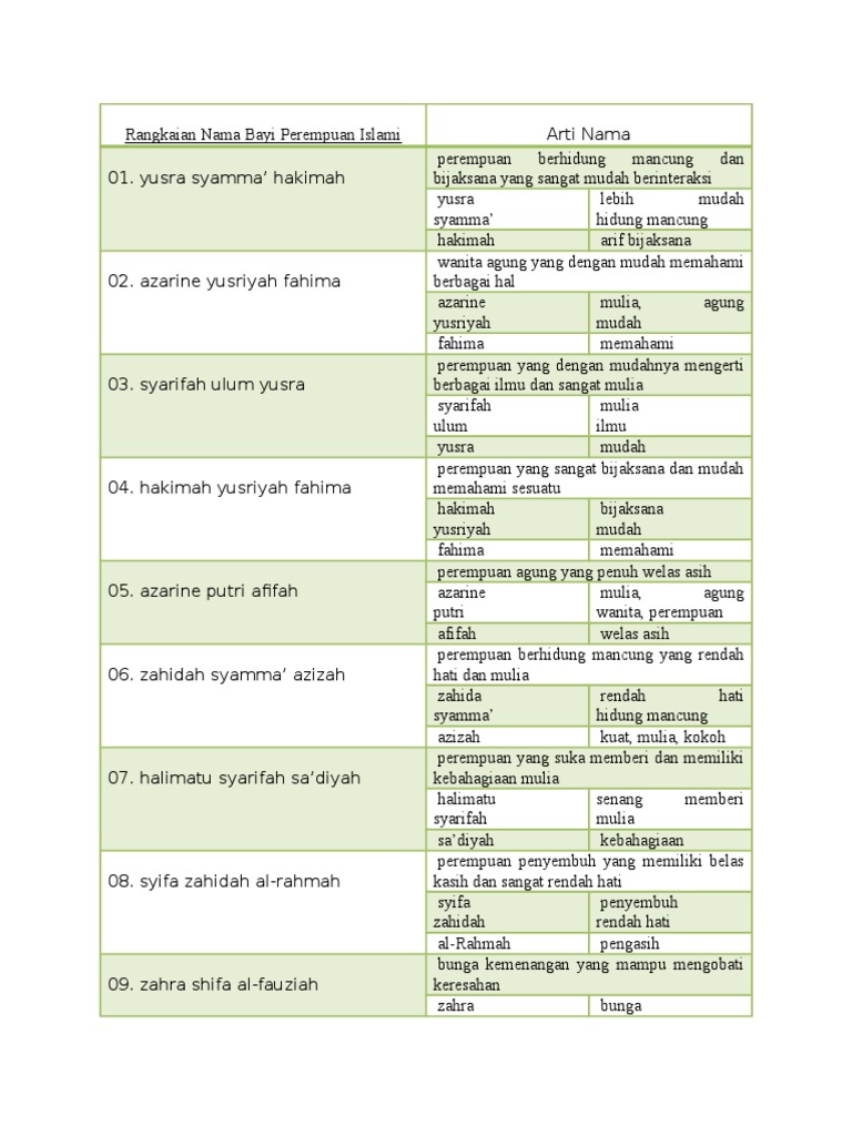 1500 Rangkaian Nama Bayi Perempuan Modern Islami Unik Dan Artinya Page 5 Of 26 Widiynews Com