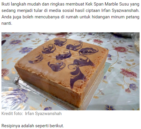 Kitchen Mak Tok Sajian Dapur Bonda Kek Viral Span Marble Susu Resepi Irfan Syazwanshah