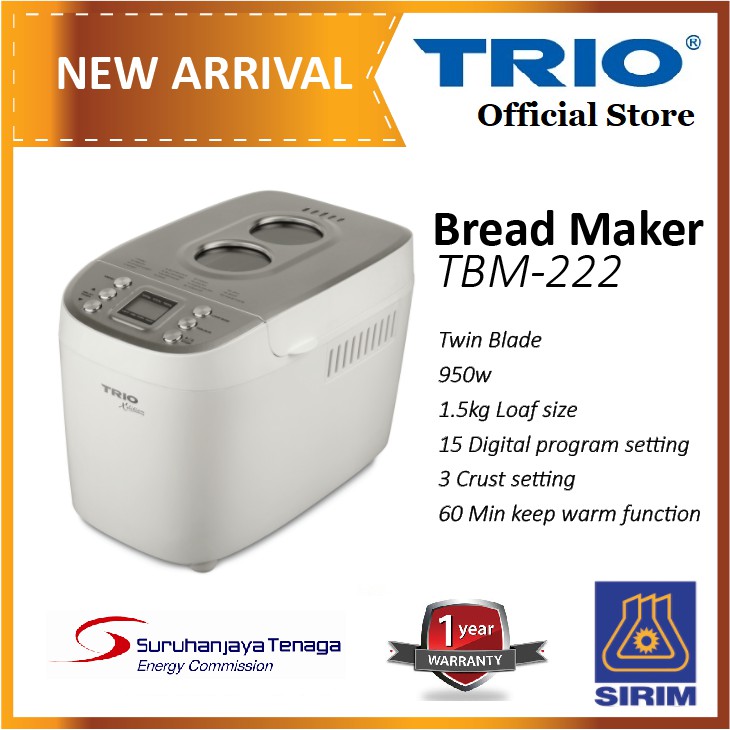 Trio Twin Blade Bread Maker Tbm 222 1 5kg Loaf Size Shopee Malaysia